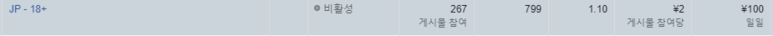 예산은 아시다시피 광고세트 탭에서 설정이 되는거죠. 하루에 100옌 한화로 1천원이 세팅이 되어있습니다.